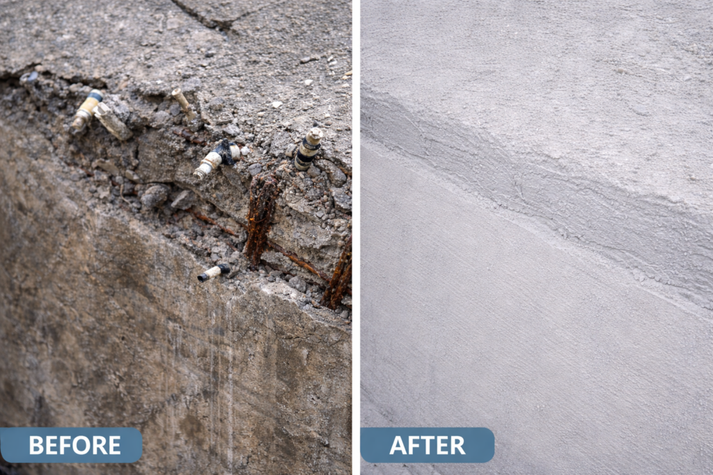هل بدأت الخرسانة في مشروعك تُظهر شروخاً أو تآكلاً أو تسرباً؟